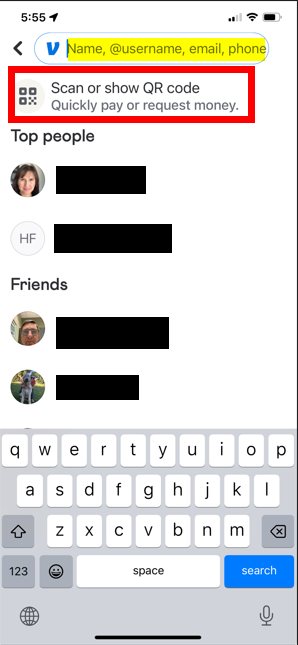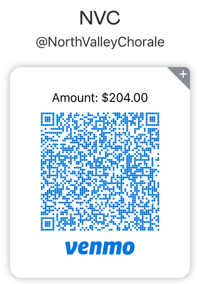 - Enter NorthValleyChorale@gmail.com in the highlighted area OR click “Scan or show QR code” and use your camera to scan the QR code.